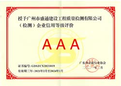 • 省市政行業(yè)協(xié)會(檢測)企業(yè)信用等級評價(3A)