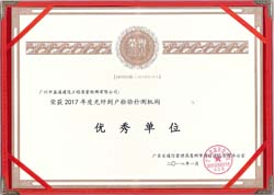 • 2017年度光纖到戶檢驗檢測機構優(yōu)秀單位_廣州通管辦