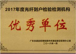 • 2017年度光纖到戶檢驗檢測機構優(yōu)秀單位_惠州通管辦