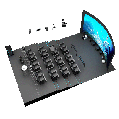 5D影院由三部分組成:立體投影系統(tǒng);振動(dòng)座椅和特效設(shè)備;計(jì)算機(jī)控制系統(tǒng)。這三者的協(xié)同作用形成一個(gè)系統(tǒng),刺激觀眾的視覺(jué)、聽覺(jué)、觸覺(jué)和感官,再現(xiàn)電影主題所涉及的環(huán)境、環(huán)境中的各種細(xì)節(jié)、讓觀眾感受身臨其境的整體效果。