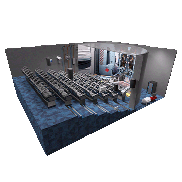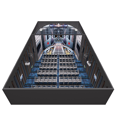 飛越劇場采用裸眼3D動感技術,視覺顯示裝置由環形LED屏、地面LED屏和頂面LED屏組成,讓觀眾感受到具有包裹性、180°沉浸感的顯示空間,觀眾進入飛越劇場,動感飛越劇場座椅將體驗者升高至雙腳懸空飛越劇場壓桿鎖緊體驗者,飛行座椅伴隨裸眼3D影片進行強勁的搖擺晃動,并通過模擬吹風、下雨、下雪、泡泡特效,為體驗者帶來視覺聽的沉浸式體驗。